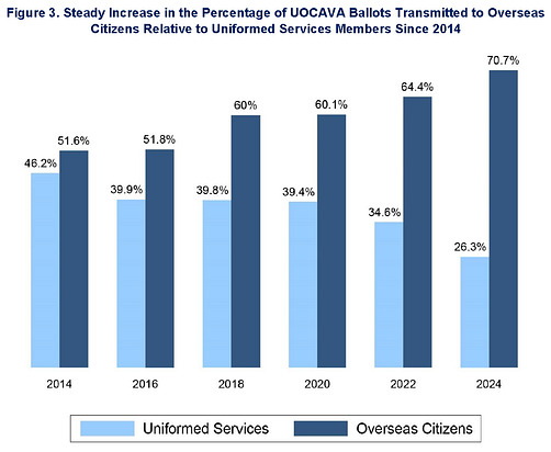 In 2024 only 26.3% of UOCAVA voters were in the military nationally.